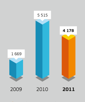 EBITDA по итогам 2011 года составила 11 813 млн руб. (снижение –12 % к 2010 году), что обусловлено снижением чистой прибыли на 1 338 млн руб.