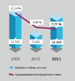 Благоприятная ситуация на рынке корпоративного кредитования в 2011 году (отсутствие у банков проблем с ликвидностью и низкий уровень процентных ставок) позволили ОАО «Тюменьэнерго» увеличить кредитный портфель почти в 2 раза: с 5 522 млн руб. (по состоянию на конец 2010 года) до 10 507 млн руб. (по состоянию на конец 2011 года). Средневзвешенная процентная ставка по кредитам и займам Общества на конец 2011 года составила 7,77 % (8,09 % — на конец 2010 года).