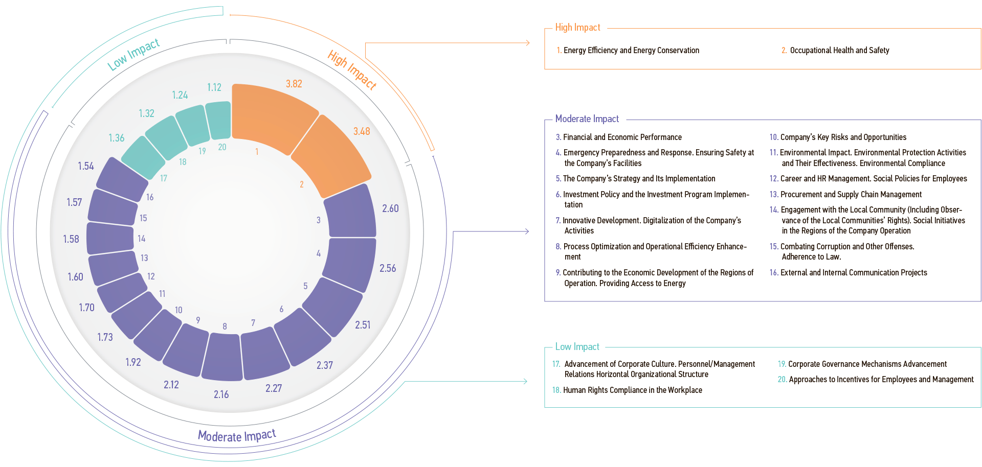 The procedure for identifying material topics has been performed under the International Integrated Reporting Framework and the GRI Sustainability Reporting Guidelines. As part of the Report preparation, the Company undertook stakeholders’ survey in December 2021 in order to prioritize material topics for disclosure in the text of the Report.