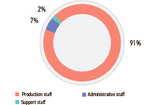 Training prioritizes engineering staff as well as the Company’s candidate pool. Production staff accounted for 91% (6,531) of those trained.