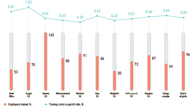 All employees are trained and tested in occupational health and safety pursuant to Tyumenenergo JSC’s Occupational Health and Safety Testing Routine approved and put into force by Order of Tyumenenergo JSC No. 294 dd. May 21, 2019; specialized training institutions are involved in the process. The Company organizes workmanship contests, OHS briefings and workshops, first-aid trainings, etc. All these activities are consistent with the programs, regulations, and other effective documents.