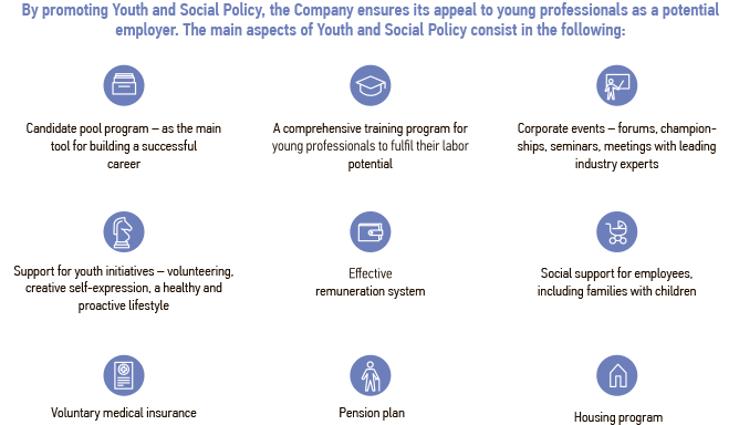 The HR policy is aimed at developing the intellectual, professional and managerial potential of employees to implement the Company’s strategic priorities and the adopted concept of “Digital Transformation 2030”.