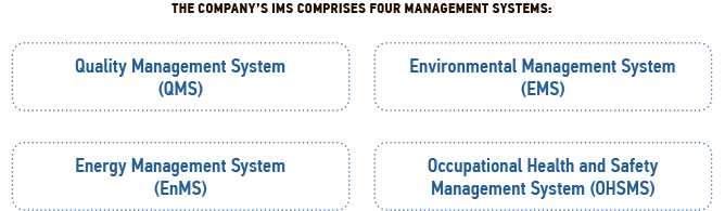 In general, management systems demonstrated good results over the past year, which was confirmed by recertification audit of the IMS for compliance with ISO 9001, ISO 14001, ISO 45001, and ISO 50001 carried out by an independent auditor in November 2021.