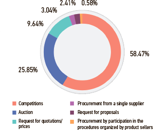 In 2021, procurements totaled 15,378.1 million rubles inclusive of VAT. Open bids accounted for 14,820.5 million rubles inclusive of VAT or 96.37%. Procurements from a single source totaled 467.7 million rubles inclusive of VAT or 3.04 %.