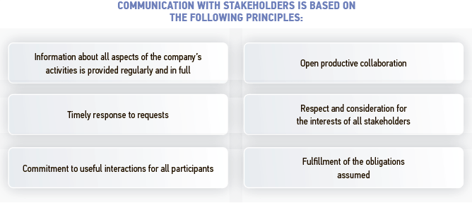 Interaction with stakeholders is performed via information channels, such as official Internet portals and the Company’s social media accounts.
