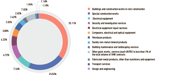 The annual value of contracts made with SMBs in 2021 totaled 6,936.8 million rubles inclusive of VAT or 64.95% of the total value of procurement contracts made in 2021; SMB-exclusive bids totaled 4,049.6 million rubles inclusive of VAT or 37.92%.