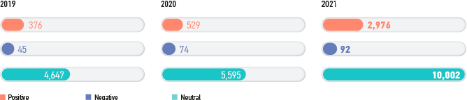 In 2021, Rosseti Tyumen JSC had 10.4 thousand mentions in media. The coverage of publications amounted to more than 13.5 million people. In 2021, 359 press releases were submitted to the editorial boards of media, twice as many as in 2020.