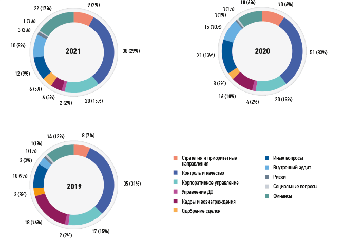 Также приведем статистику по категориям вопросов, рассмотренных Советом директоров за период 2019–2021 гг.