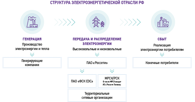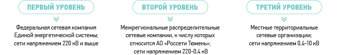 В Российской энергетической отрасли существует три уровня сетевых компаний, которые сформировались по технологическому и административно-территориальному признакам: