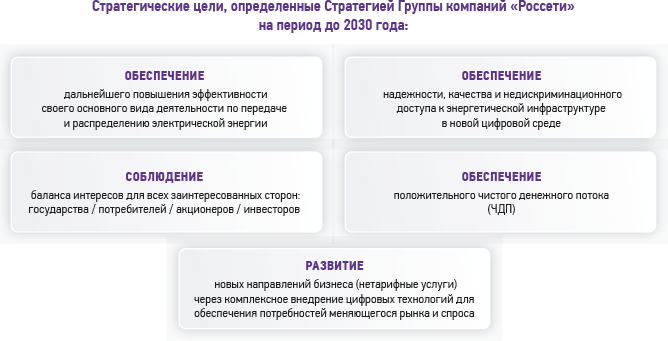 Стратегические цели, определенные Стратегией группы компаний «Россети» на период до 2030 года: