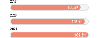 По итогам 2021 года, средняя заработная плата сотрудников увеличилась на 3,0% по сравнению с 2020 годом до 109,9 тыс. руб. в месяц.