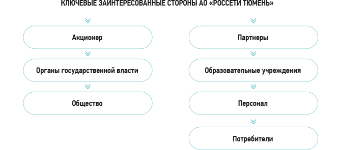 «Россети Тюмень» осознает высокий уровень ответственности перед всеми заинтересованными сторонами. Поэтому концепция управления бизнесом «Россети Тюмень» ориентирована на удовлетворение ожиданий всех заинтересованных сторон в комплексном устойчивом экономическом, социальном и экологическом развитии Компании, отвечающем потребностям настоящего времени и не ставящем под угрозу возможности и стремления будущих поколений (GRI 102-43).