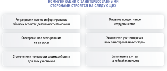 Взаимодействие со стейкхолдерами осуществляется через группы информационных каналов, включая официальные Интернет-порталы и каналы компании в социальных сетях.
