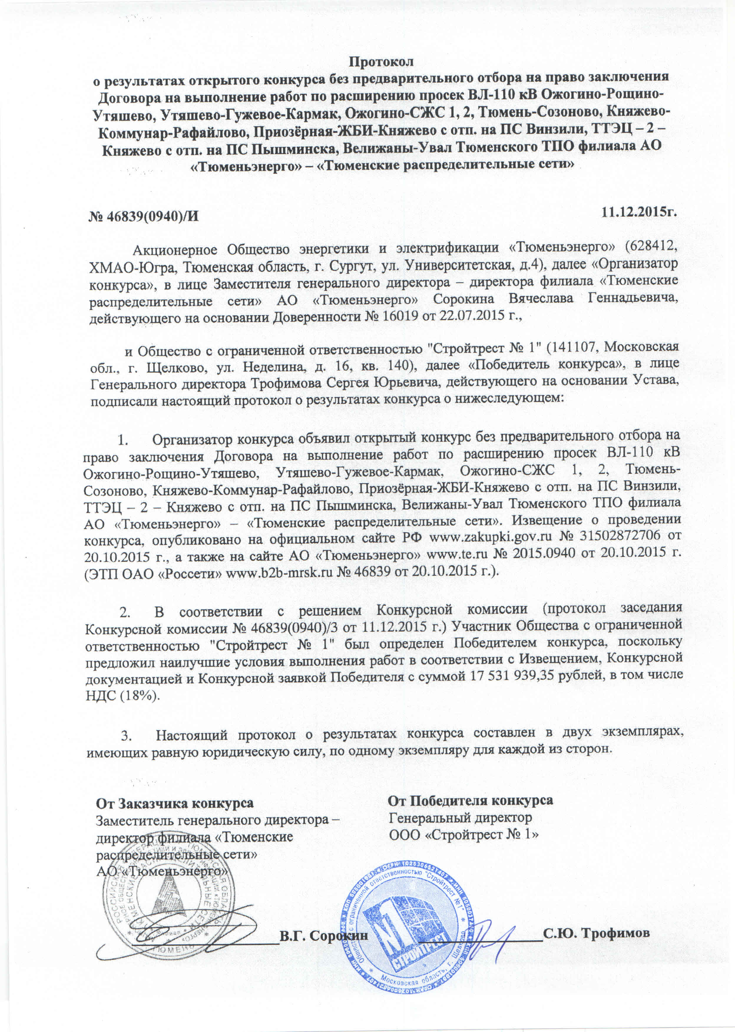 | Наименование | Открытый одноэтапный конкурс без предварительного отбора на право заключения договора на выполнение работ по расширению просек ВЛ-110 кВ Ожогино-Рощино-Утяшево, Утяшево-Гужевое-Кармак, Ожогино-СЖС 1, 2, Тюмень-Созоново, Княжево-Коммунар-Рафайлово, Приозёрная-ЖБИ-Княжево с отп. на ПС Винзили, ТТЭЦ – 2 – Княжево с отп. на ПС Пышминска, Велижаны-Увал Тюменского ТПО филиала АО «Тюменьэнерго» – «Тюменские распределительные сети» |