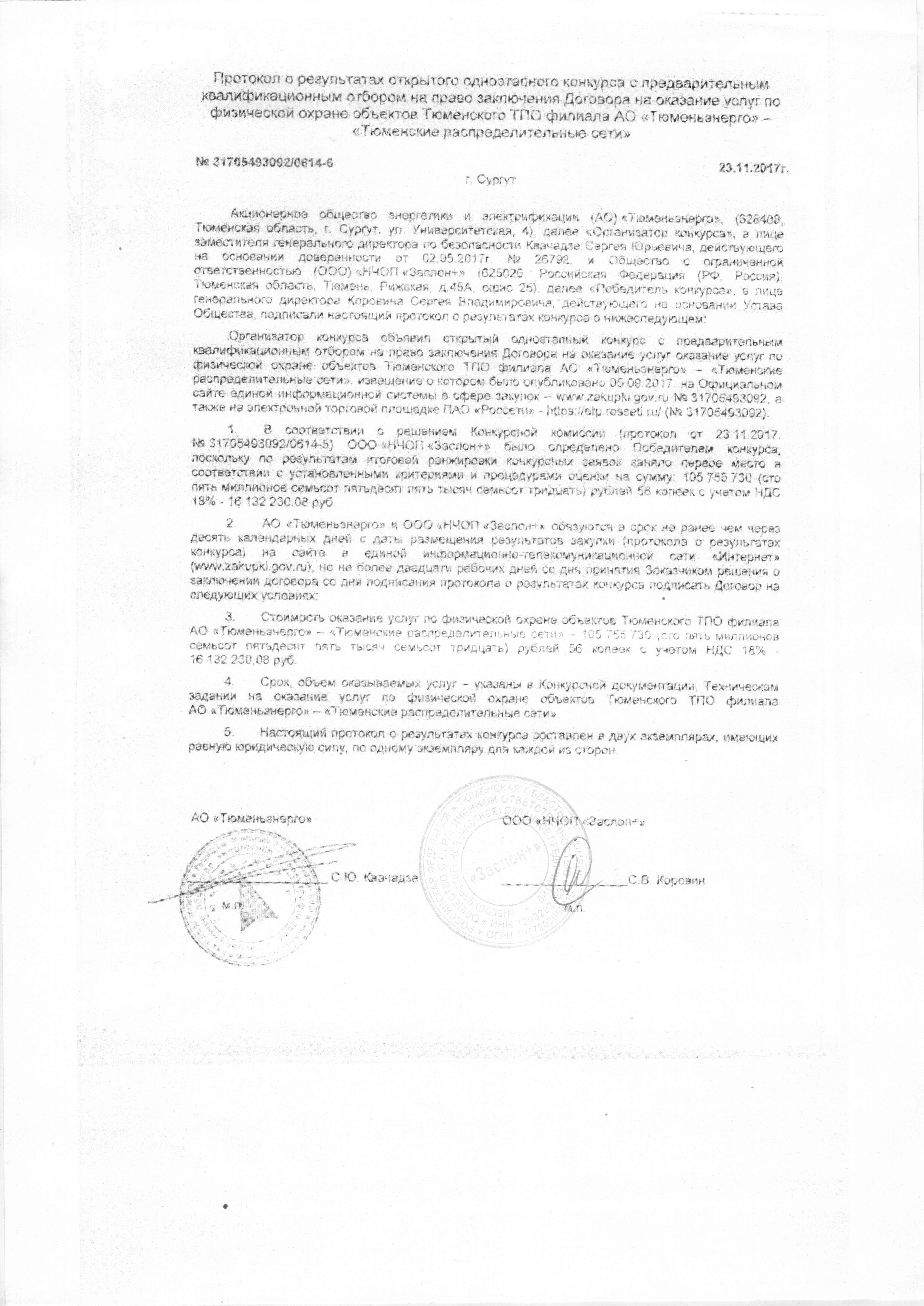 | Наименование | Открытый одноэтапный конкурс с предварительным квалификационным отбором на право заключения Договора на оказание услуг по физической охране объектов Тюменского ТПО филиала АО «Тюменьэнерго» – «Тюменские распределительные сети» |