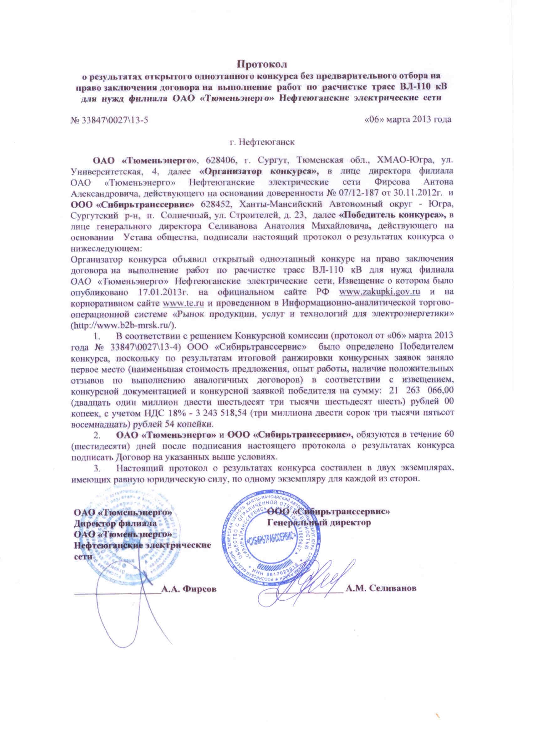 | Наименование | Открытый одноэтапный конкурс без предварительного отбора на право заключения Договора на выполнения работ по расчистке трасс ВЛ-110 кВ филиала ОАО «Тюменьэнерго» Нефтеюганские электрические сети от поросли |